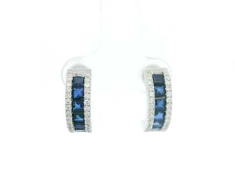 18K White Gold Half Hoop Earrings with Square cut Blue Sapphires & Diamonds