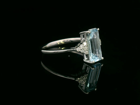 18K White Gold Aquamarine & Diamond Ring – 1.47 Carat Emerald-Cut Center