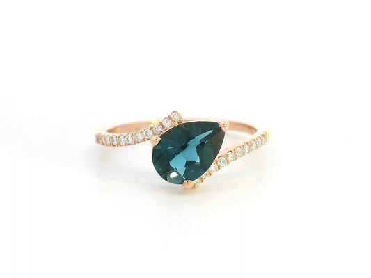 18K Rose Gold Pear-Shaped London Blue Topaz Ring with Diamond Accents