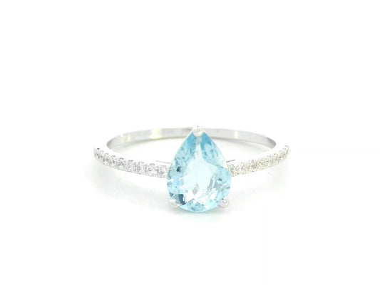 18K White Gold Pear-Shaped Aquamarine Ring with Diamond Accented Band