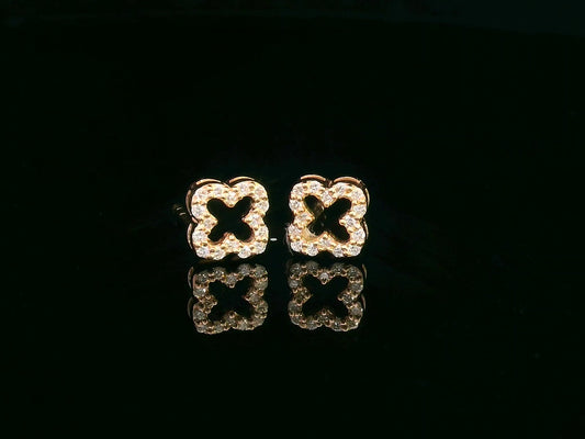 18K Gold Diamond Clover Motif Earrings – 0.15 Carat Total, Elegant Open Design
