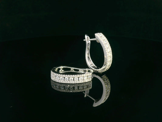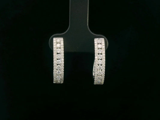 Diamond Hoop Earrings in 18K White Gold – 0.85 Carat Total, Triple Row Design