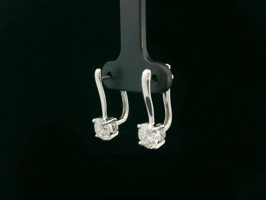 18K White Gold Diamond Drop Earrings – 2.03ct Total Round-Cut Diamonds (GIA Certified)