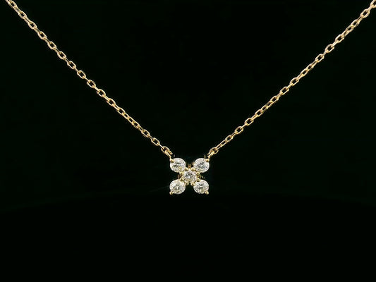 18K Yellow Gold Clover Diamond Necklace – Minimalist Floral Pendant.