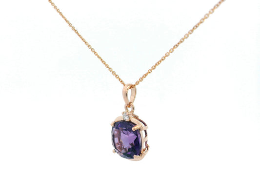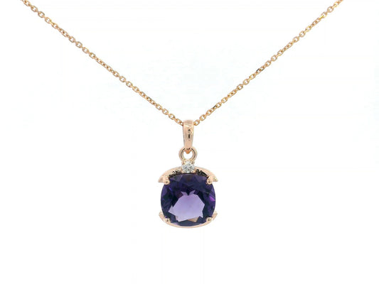 18K Rose Gold Cushion-cut Amethyst Pendant with Diamond Accent