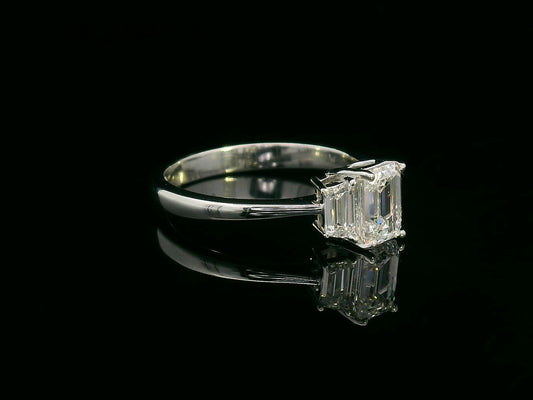 Emerald Cut Diamond Engagement Ring with Trapezoid Side Stones in 18K Gold