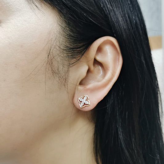 18K Yellow Gold Diamond Floral Stud Earrings | 0.25ct Total Diamond Weight