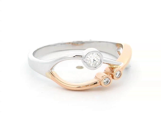 18K Gold Two-Tone Diamond Ring – Contemporary Open-Style Design with 0.11 Carats