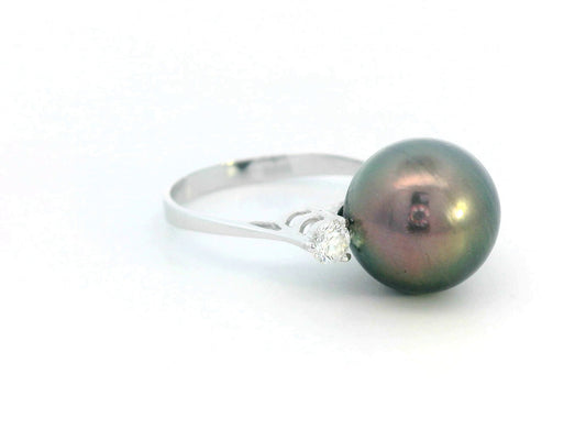 Freshwater Black Pearl and Diamond Ring in 18K White Gold – Elegant Pearl Jewelry