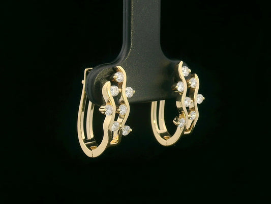 18K Gold Diamond Hoop Earrings – 0.40 Carat, Wave Design in Yellow Gold