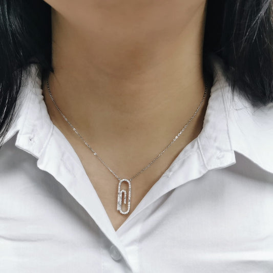 18K Gold Paperclip Diamond Necklace – 0.48ct Round & Baguette Cut Pendant