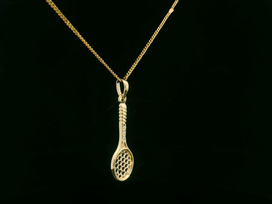 18K Yellow Gold Tennis Racket Pendant with Diamond-Set Handle – Sporty Elegance in Fine Jewelry