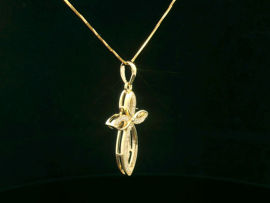 Elegant 18K Gold Cross Pendant with Pavé Diamonds | Modern Symbolism | 0.10 Carat Diamond Accent