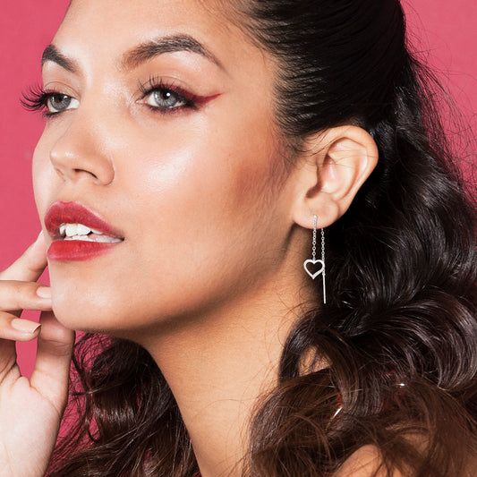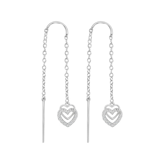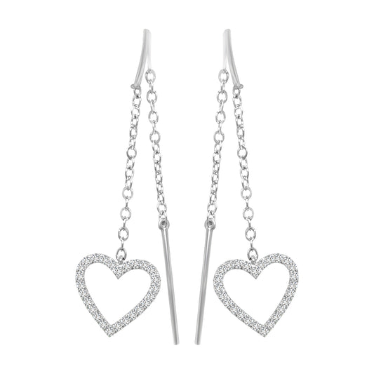 Needle And Thread Earrings with Diamond Heart Charm In 18k White Gold.