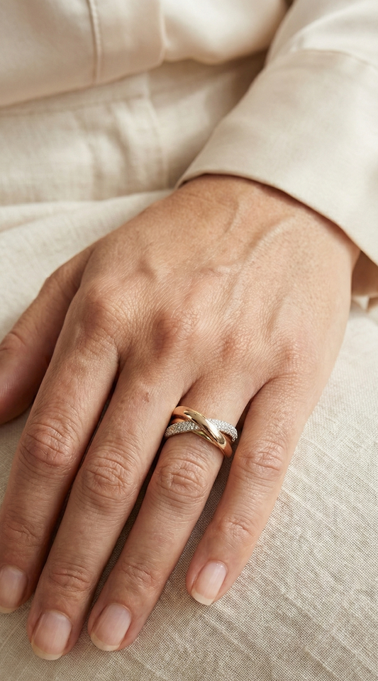 Diamond Tri-Color Triple Band Ring in 18K Gold