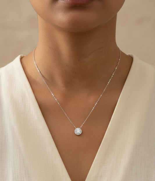 Diamond Halo Pendant Necklace in 18K White Gold – 0.80ct Center Diamond (E Color, SI2, GIA)