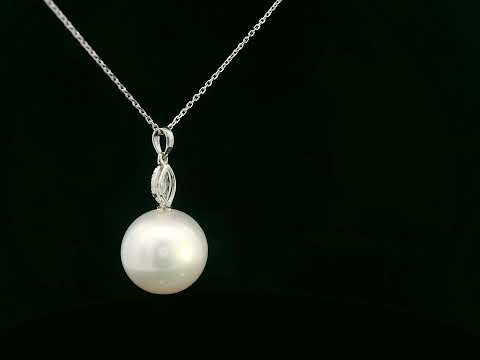 18K White Gold Pearl & Marquise Motif Diamond Pendant – Classic Elegance with 0.07ct Diamonds