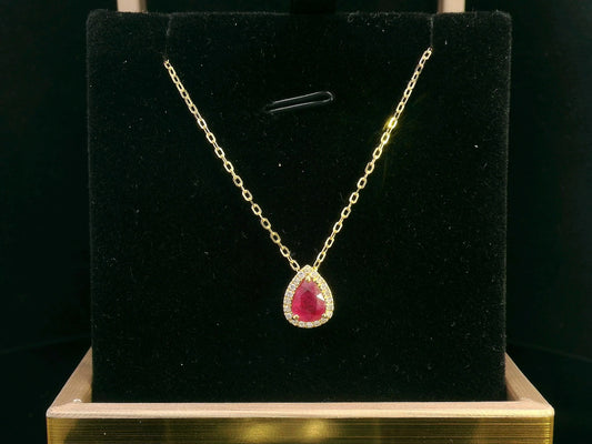 18k Yellow Gold Pear Shape Ruby Pendant Necklace With Diamond Accents