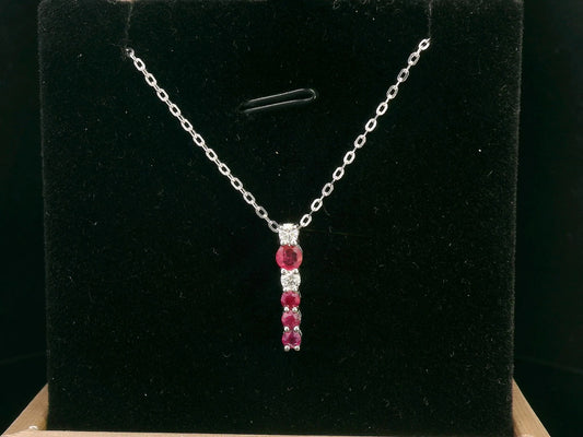 Elegant 18K Gold Ruby and Diamond Vertical Bar Pendant Necklace – Dainty July Birthstone jewelry