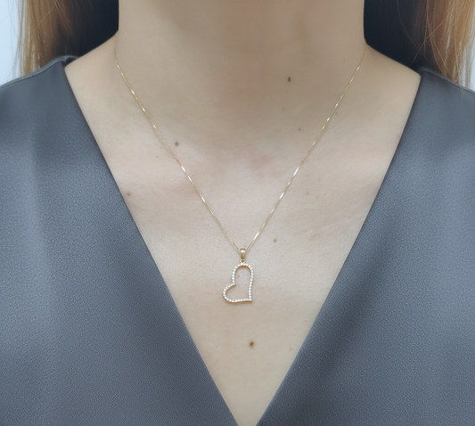 Minimalist 18K Gold Open Heart Necklace with Diamond – 0.04 Ct Diamond Pendant
