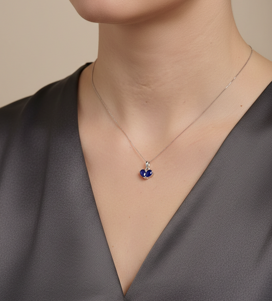 Blue Sapphire & Diamond Heart Pendant in 18K White Gold