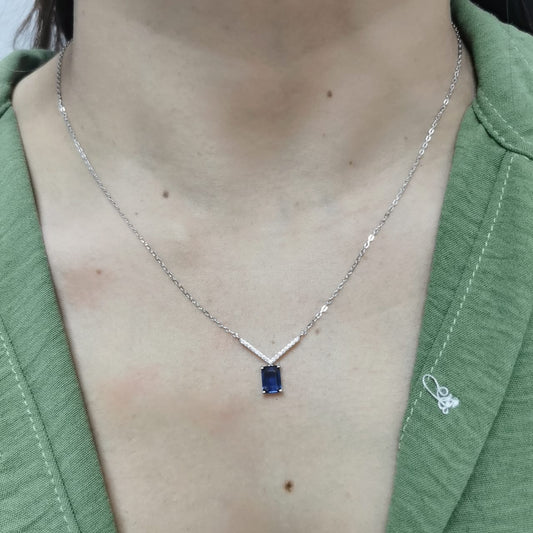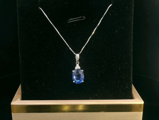 18K Gold Blue Sapphire Necklace with Diamonds | 0.95ct Sapphire & 0.08ct Diamonds