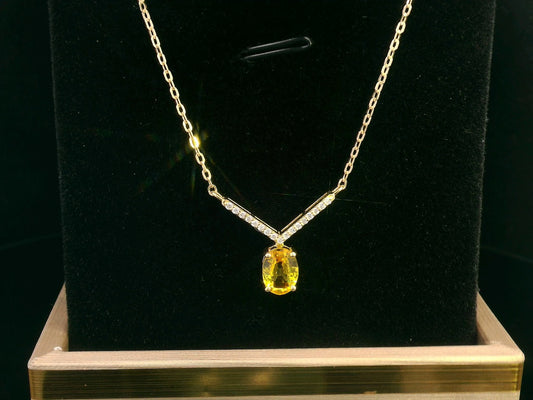 Radiant 18K Gold, Oval Yellow Sapphire Necklace – 1.10 Ct Oval Sapphire & 0.08 Ct Diamonds