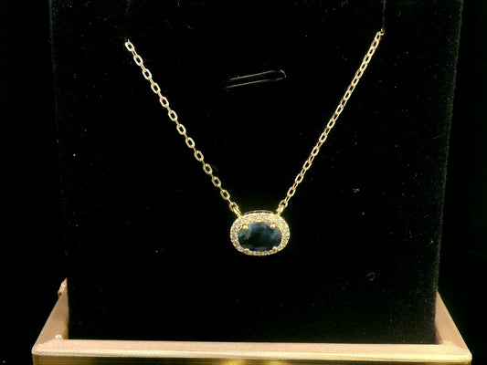 18K Gold Blue Sapphire Necklace with Diamonds | 0.86ct Sapphire & 0.08ct Diamonds