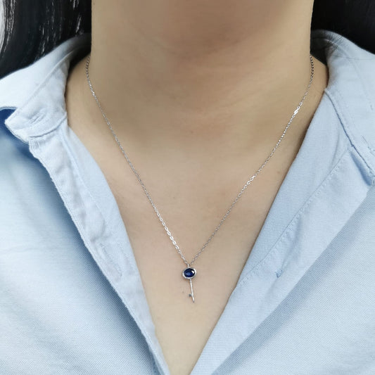 18K Gold Sapphire Key Pendant Necklace – 0.40ct Natural Sapphire
