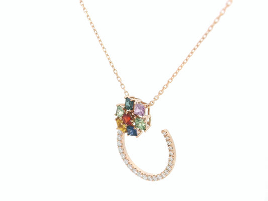 18K Rose Gold Multicolor Sapphire & Diamond Necklace – Princess-Cut Design