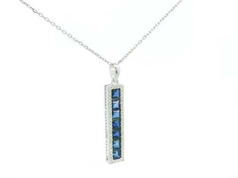 18K White Gold Blue Sapphire & Diamond Bar Pendant – Elegant Minimalist Design