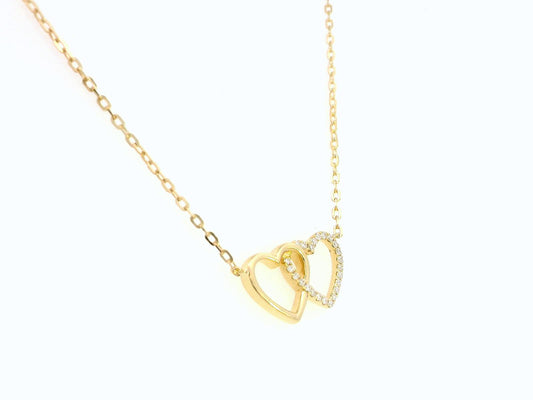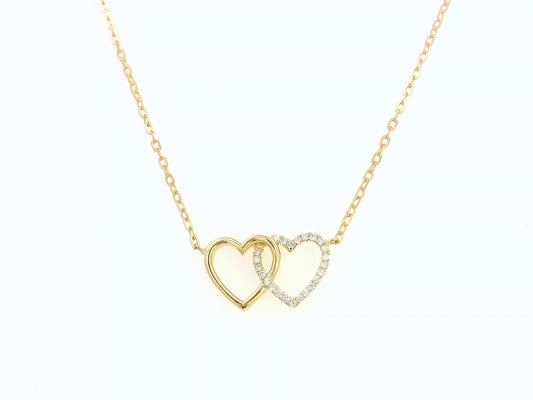 18K Gold Interlinked Hearts Necklace with Diamonds – Elegant Symbol of Love