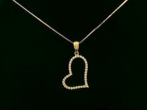 18k Yellow Gold Open Heart Diamond Pendant | Pavé-Set Diamonds 0.15 CT