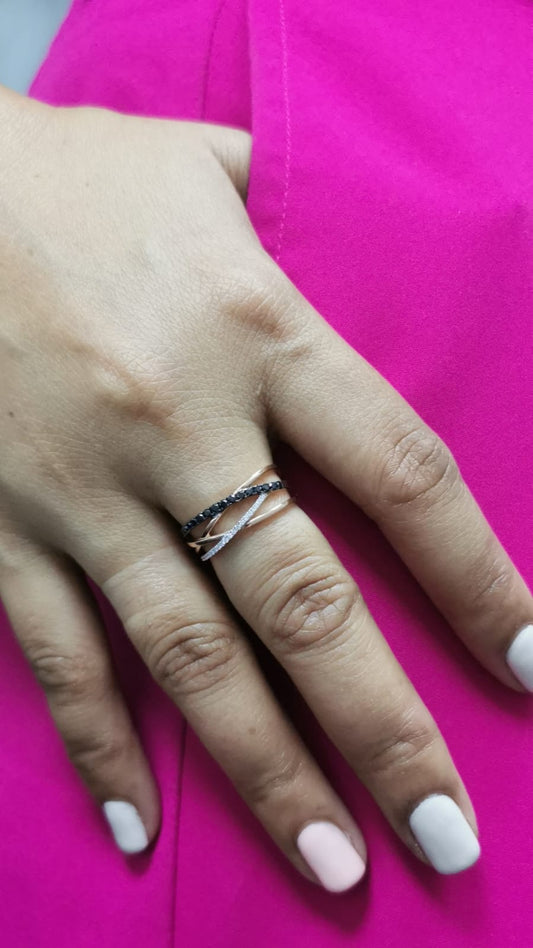 Salt and Pepper Diamond Ring, Black And White Diamond Ring In 18k Rose Gold