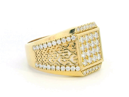 18K Yellow Gold Men's Diamond Cluster Ring | 0.99 Carat | Bold Square Design with Filigree Detailing