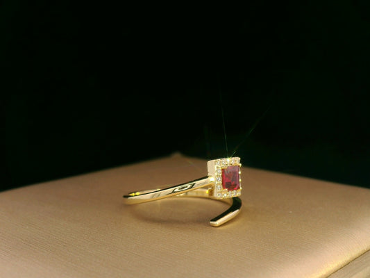 18K Yellow Gold Ruby and Diamond Halo Open-Bypass Ring – 0.36ct Ruby