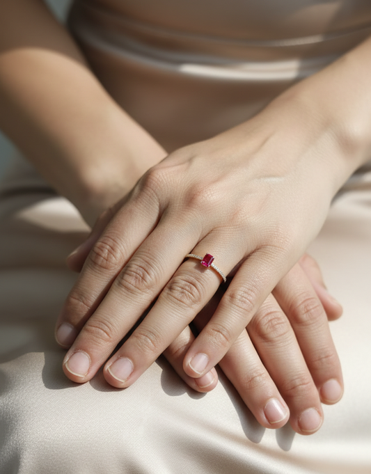 Ruby & Diamond Minimal Ring in 18K Yellow Gold
