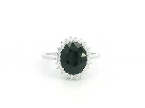 Green Sapphire & Diamond Halo Ring in 18K White Gold