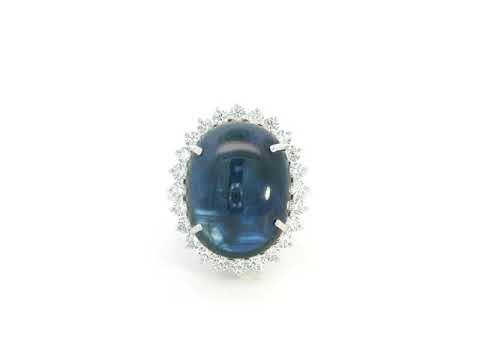 18K White Gold Oval-shape Blue Sapphire and Diamond Ring