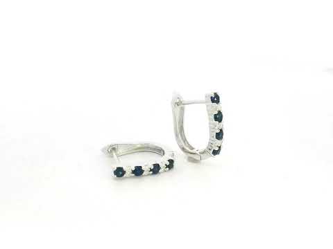 18K Gold Huggie Hoop Earrings with Blue Sapphires & Diamonds – Timeless Elegance