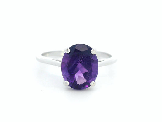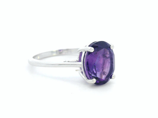 18K White Gold Solitaire Amethyst Ring – 2.61 Carat Oval-Cut Gemstone