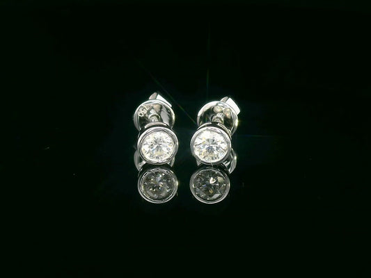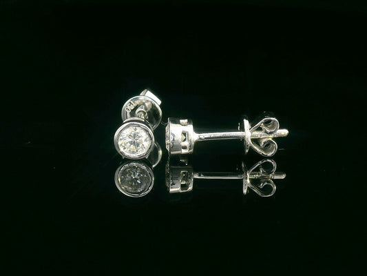 18K White Gold Bezel Set Diamond Solitaire Earrings – 0.32 Carat Round Brilliant Cut