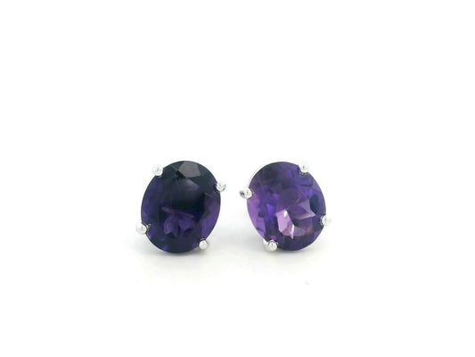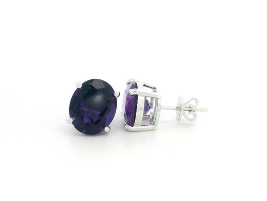 Solitaire Oval Amethyst Stud Earrings in 18K White Gold