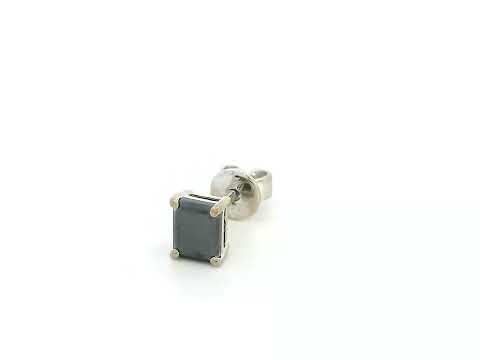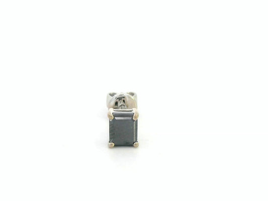 18K White Gold Black Diamond Solitaire Stud Earring | Emerald Cut 0.51ct