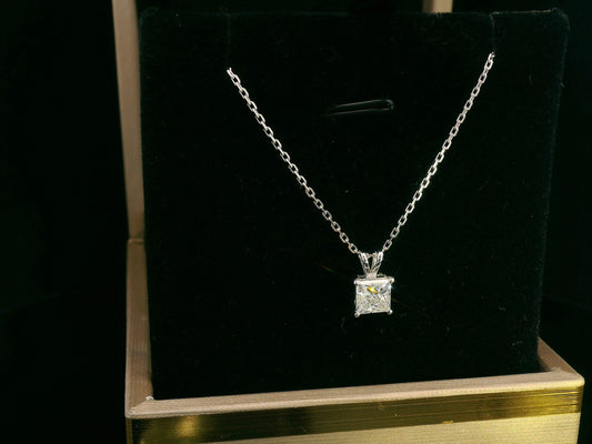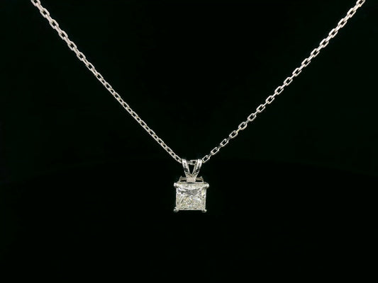 18K White Gold Solitaire Pendant with 1.01 Carat Princess Cut Diamond – IGI Certified