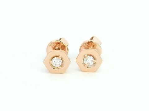 18k Rose Gold Hexagon Diamond Stud Earrings
