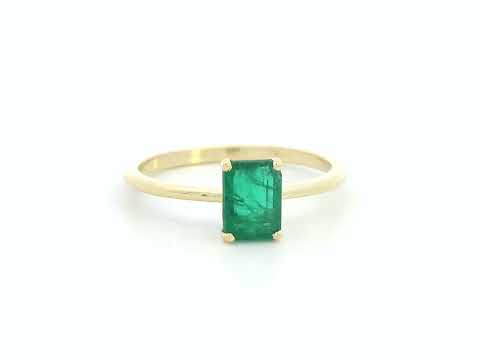 18K Yellow Gold Emerald-Cut Emerald Solitaire Ring.