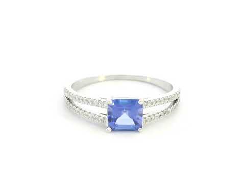 Tanzanite & Diamond Split Shank Ring in 18K White Gold