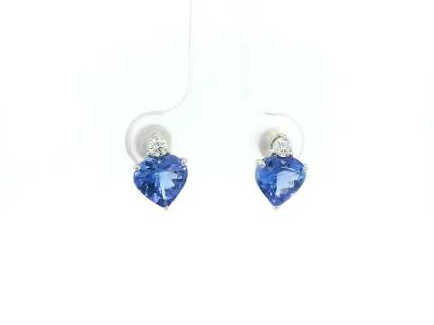 Tanzanite & Diamond Heart Stud Earrings in 18K White Gold