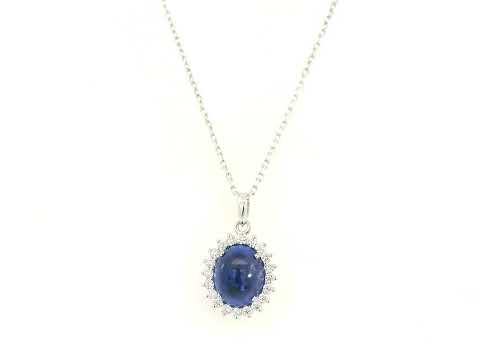 18K White Gold, Cushion Cut Tanzanite and Diamond Halo Pendant